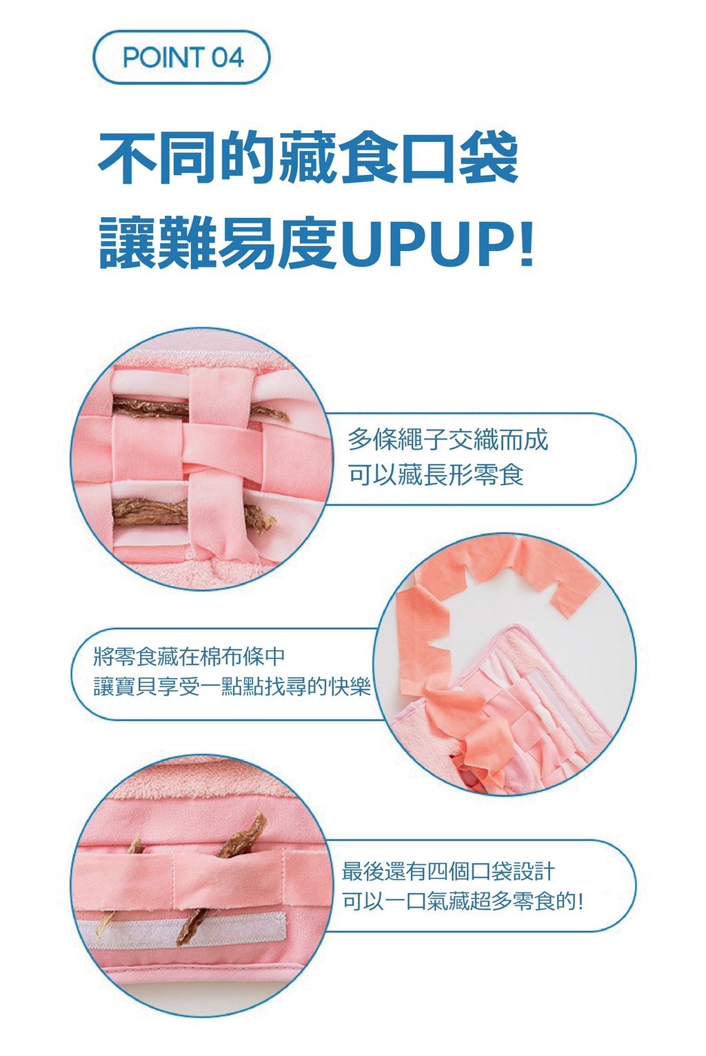 - 請注意勿讓毛小孩食下撕咬下來的玩具或較小型的玩具。