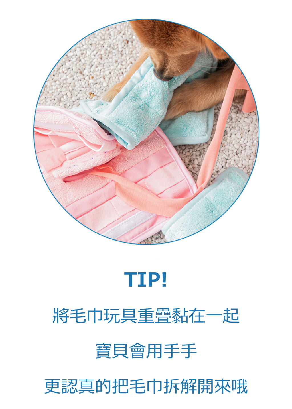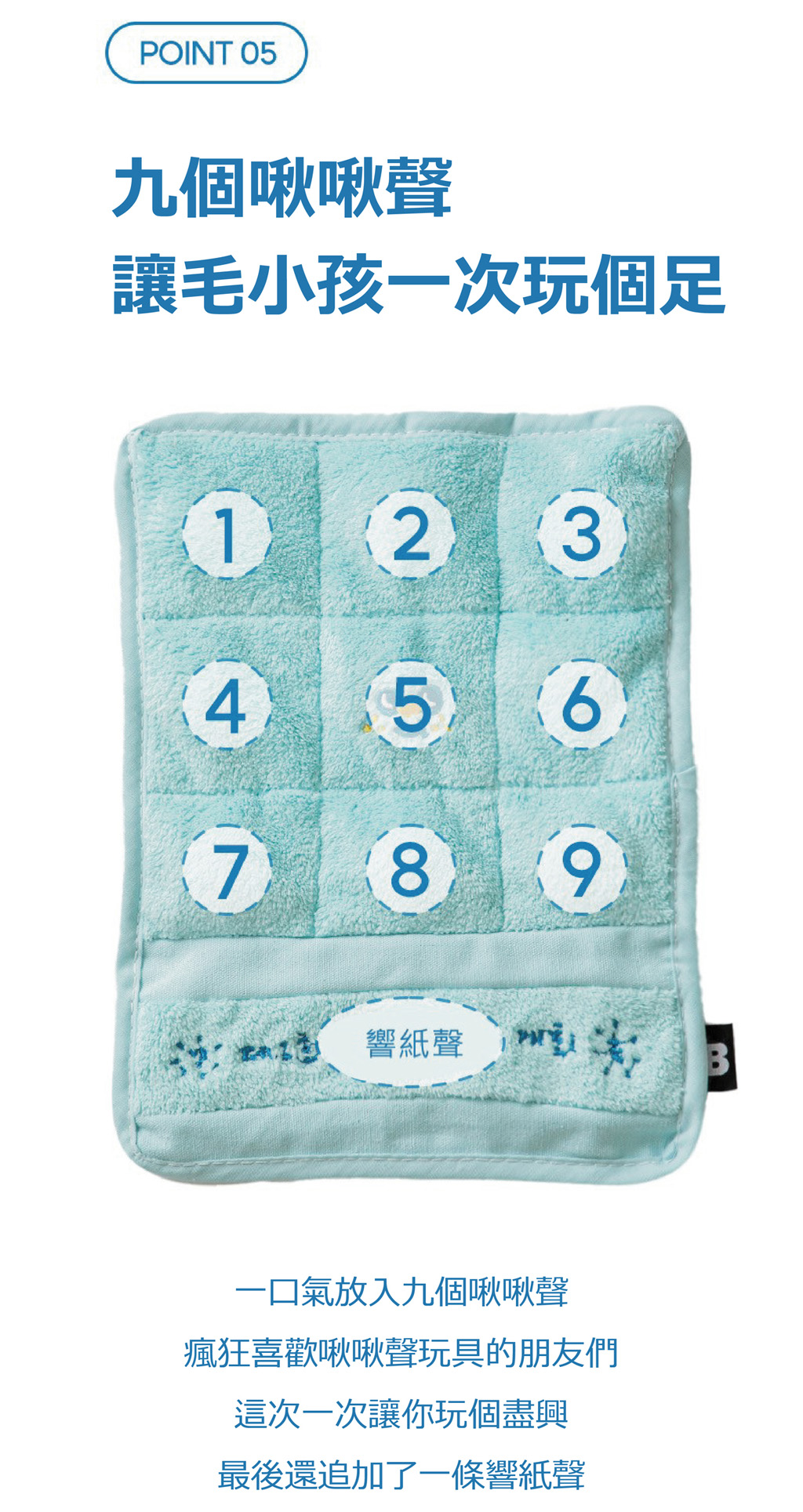 藍色毛巾一口氣放入九個啾啾聲,讓你玩個盡興~