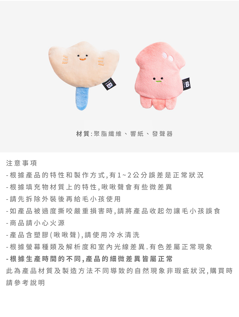 【材質】聚酯纖維、安全填充棉、內置發響器、響紙