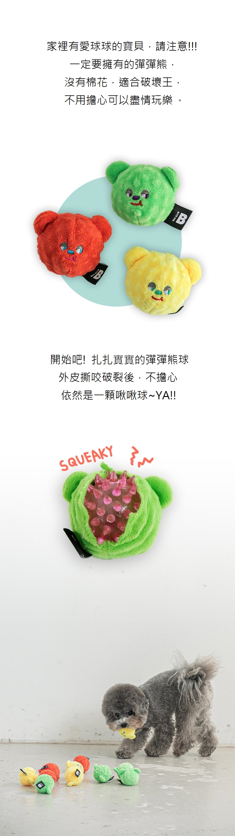 如果把外表咬破了,裡面是一顆刺刺球也可以繼續玩,還會發出響亮的啾啾聲