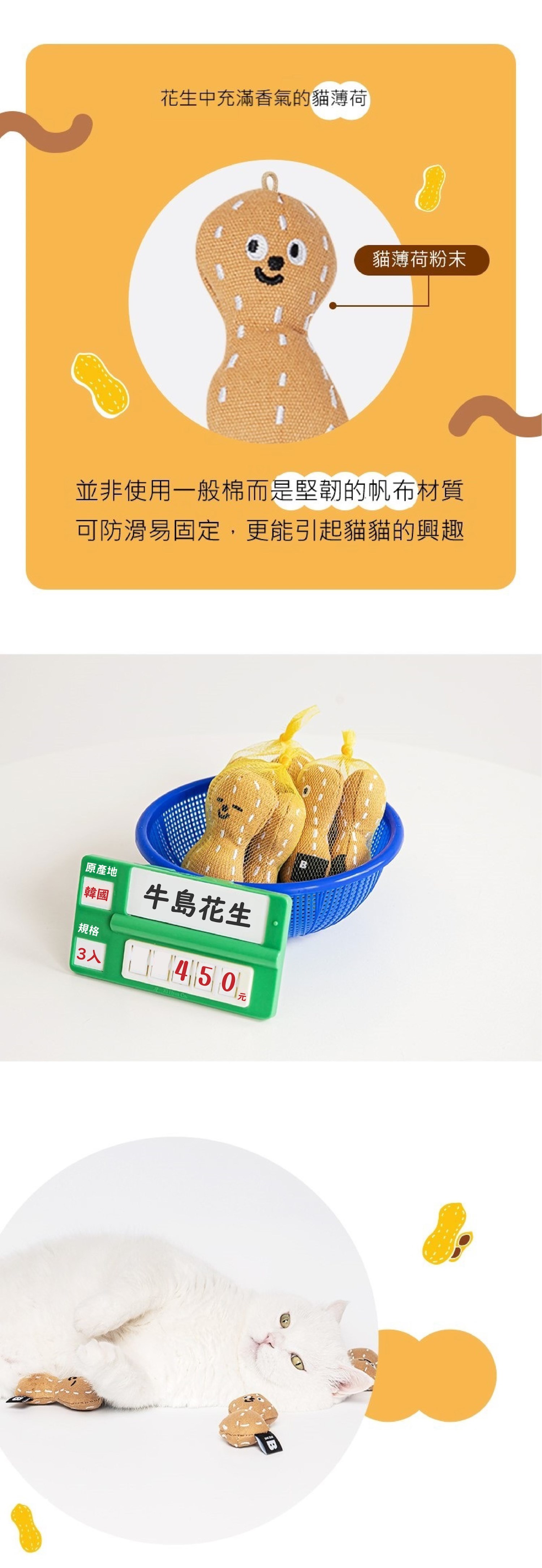 韓國Bite Me 牛島花生貓薄荷玩具(3入)