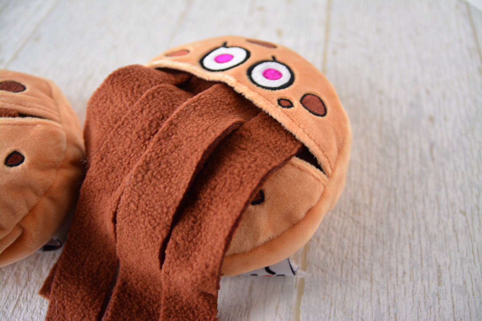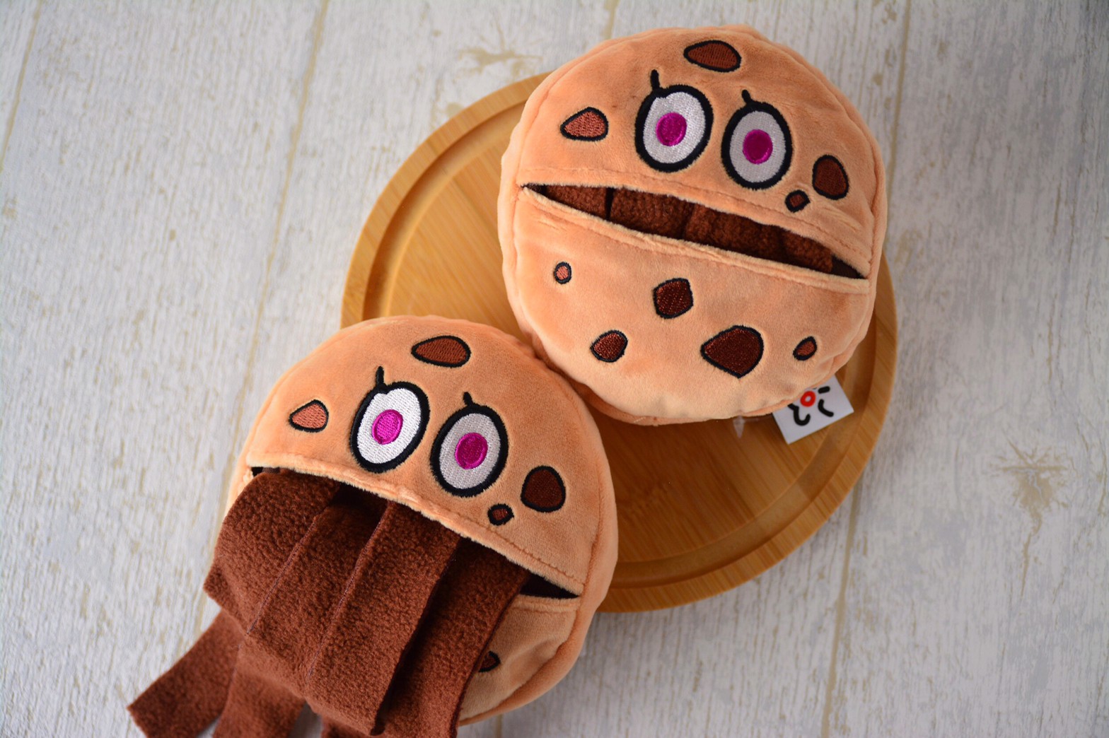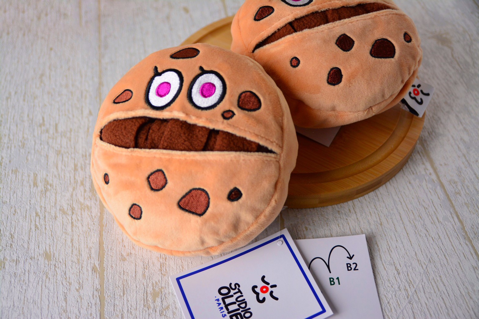 因為嘴巴有四條帶子可以捲起零食藏進去,餅乾的嘴巴設計了兩個口袋,有沙沙聲,可以藏食,一玩就上癮!