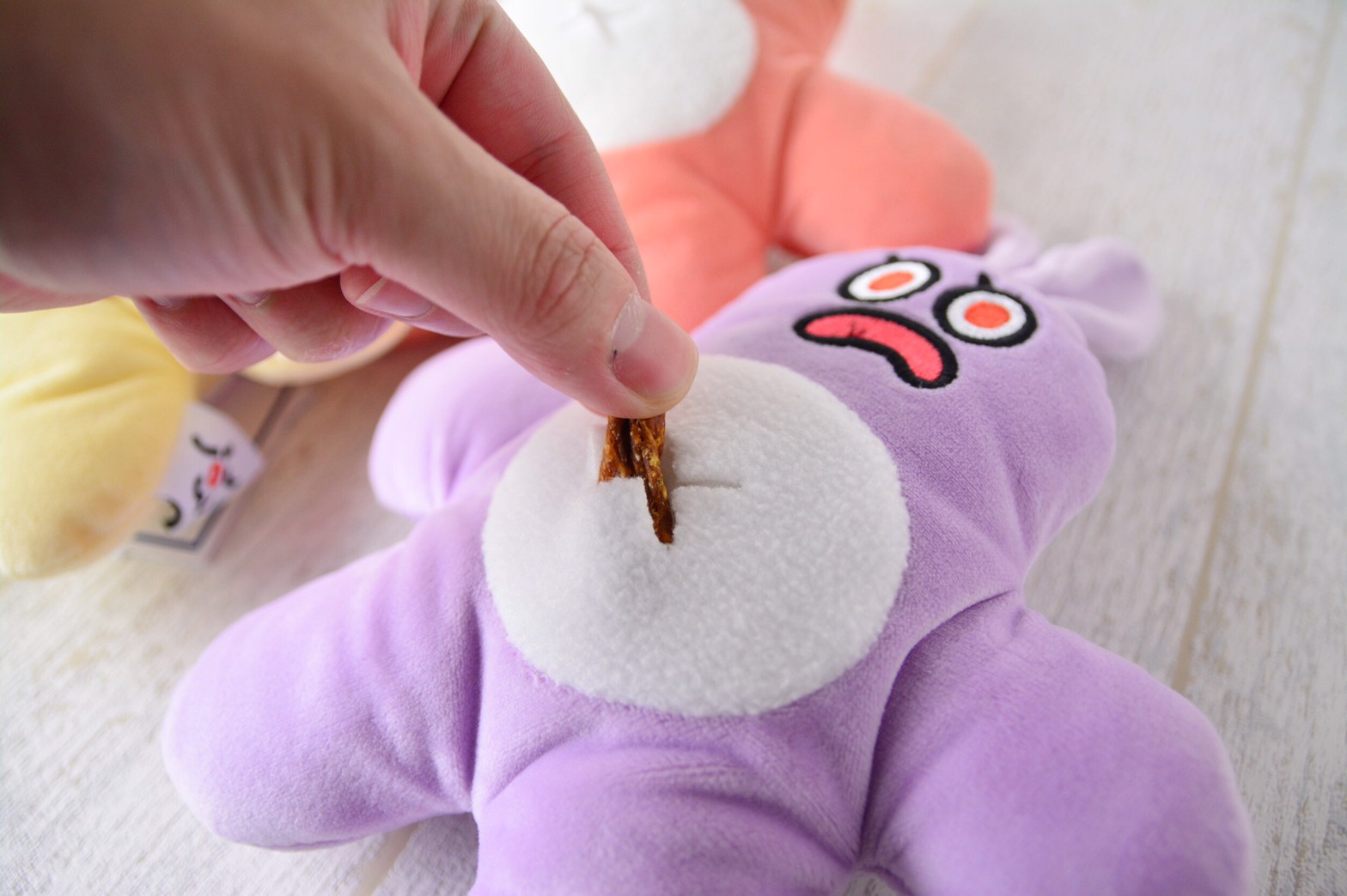 這長得有點搞笑又可愛的小花兔,是一款簡單的藏食玩偶