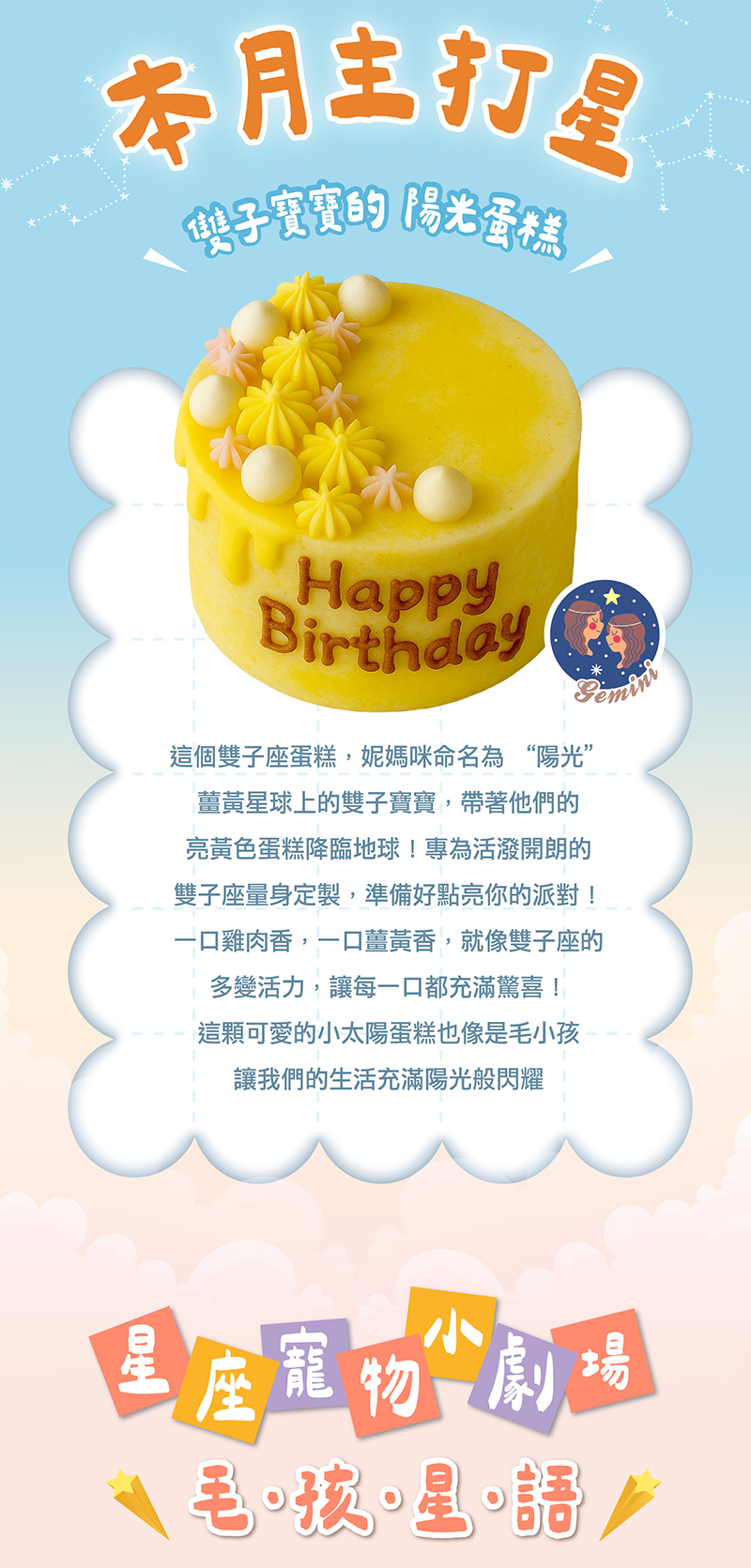 ▲附上毛孩子專屬照片插牌、生日插牌(隨機出貨)、一次性刀子、單支螺旋蠟燭(隨機出貨)、生日帽(隨機出貨)、食用小叮嚀、祝福卡