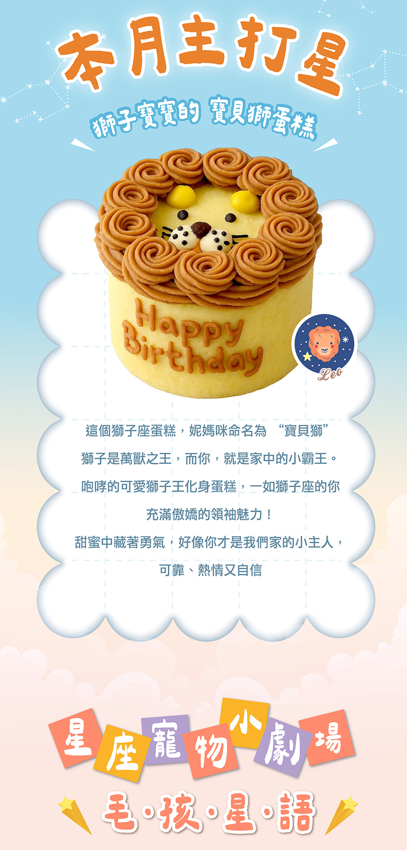 ▲附上毛孩子專屬照片插牌、生日插牌(隨機出貨)、一次性刀子、單支螺旋蠟燭(隨機出貨)、生日帽(隨機出貨)、食用小叮嚀、祝福卡