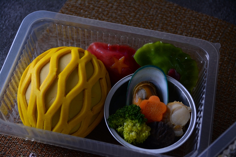 台南無刺虱目魚柳、奶油奶酪、青花菜、胡蘿蔔、鵪鶉蛋、無調味海苔、碗豆