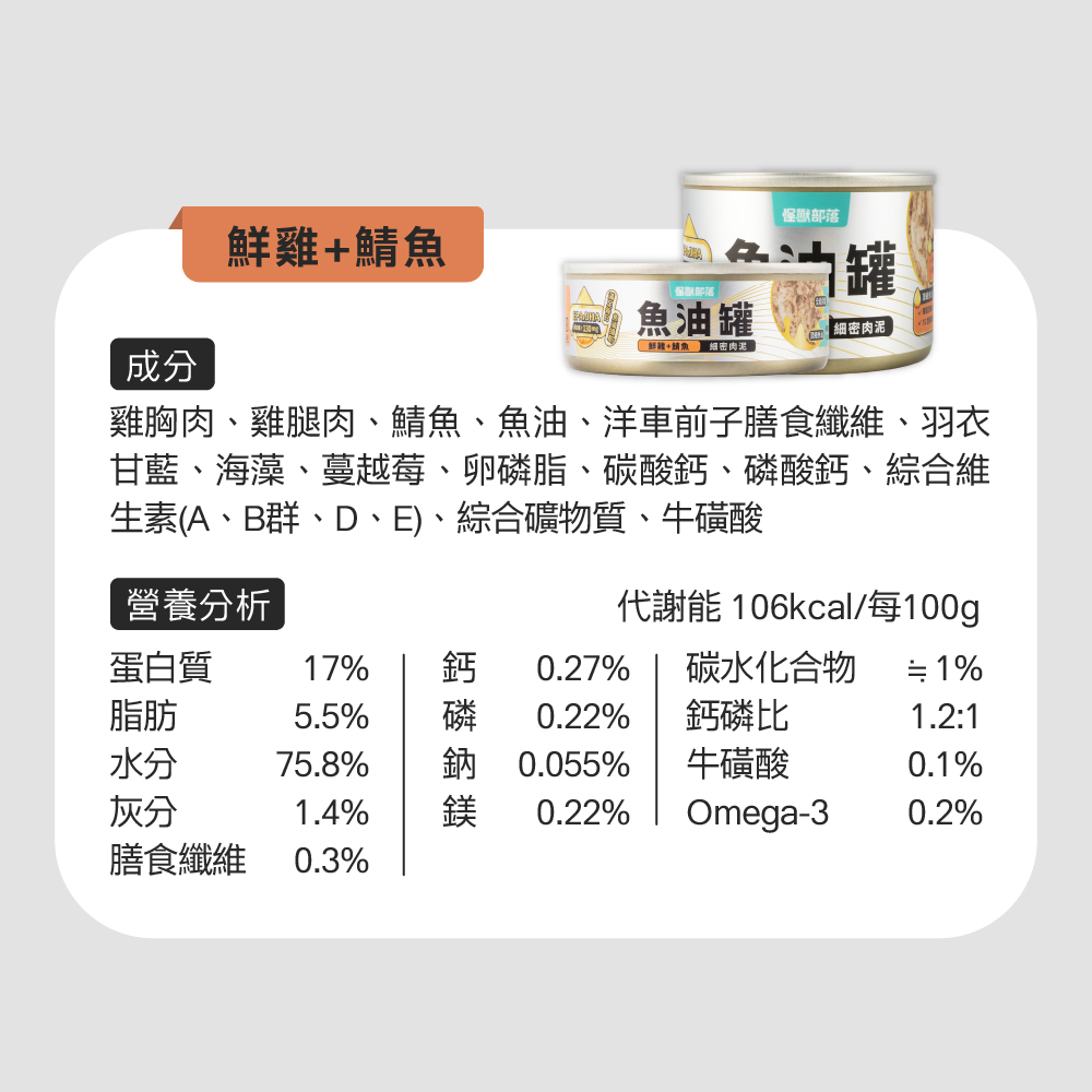 【怪獸部落LitoMon】貓用 德國頂級魚油貓主食罐 82g