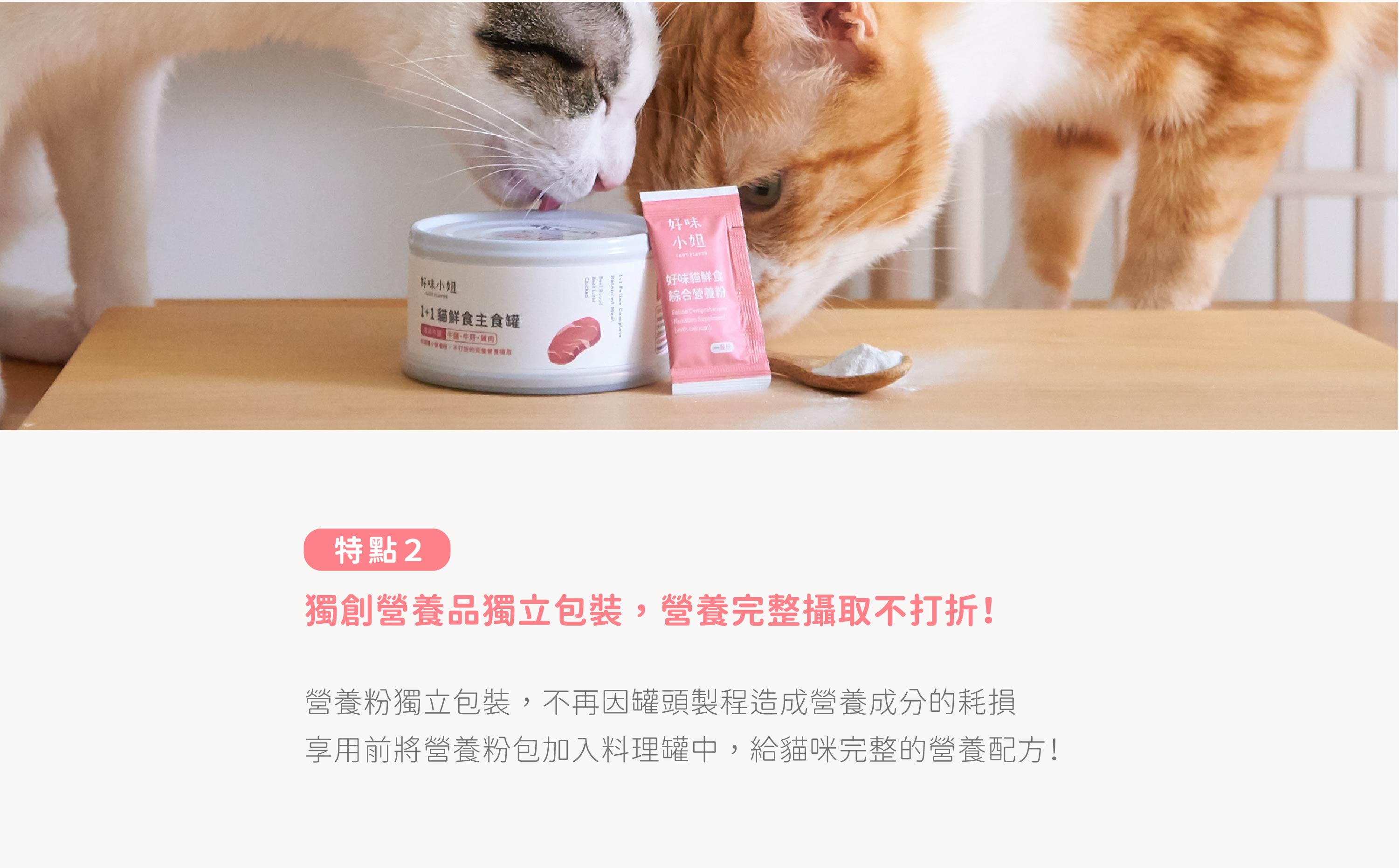 2.加入鮮食綜合營養粉包,攪拌均勻,即可給貓咪享用