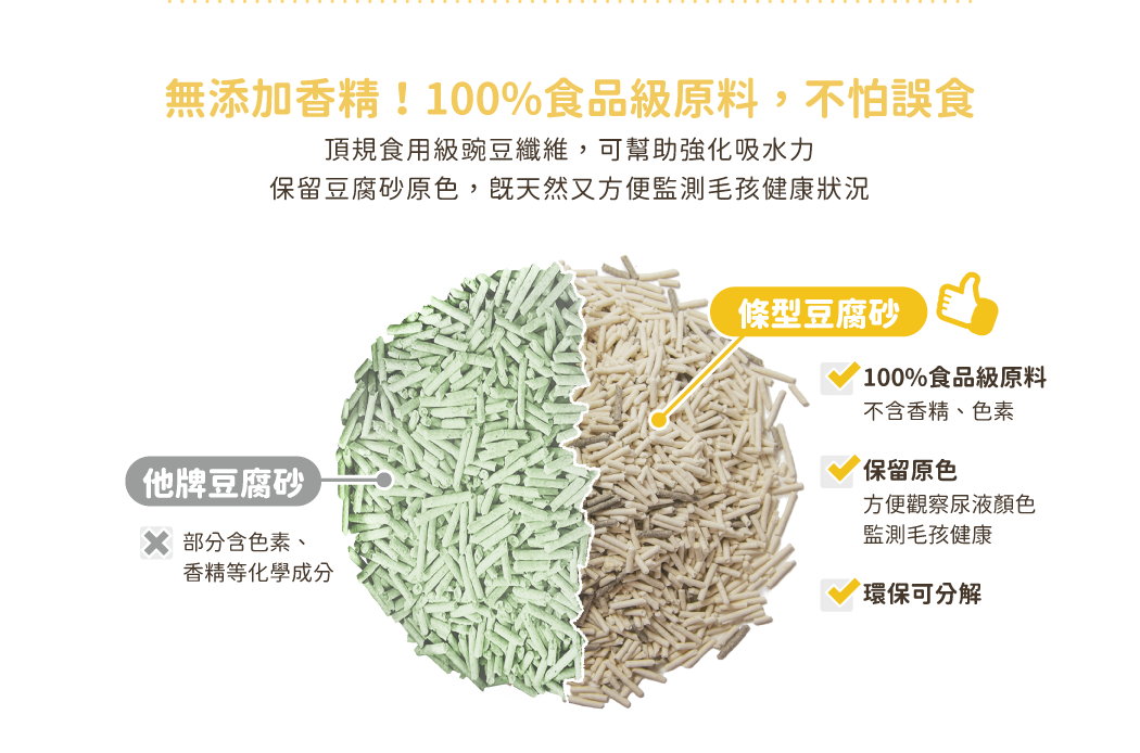 ※ 豆腐砂開封後容易受潮,開封後請存放於陰涼乾燥處,並盡速使用完畢,避免影響貓砂品質。