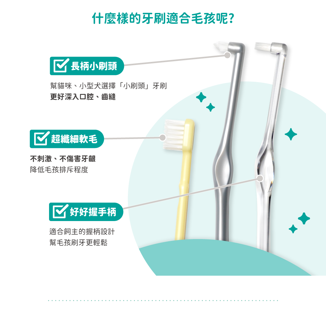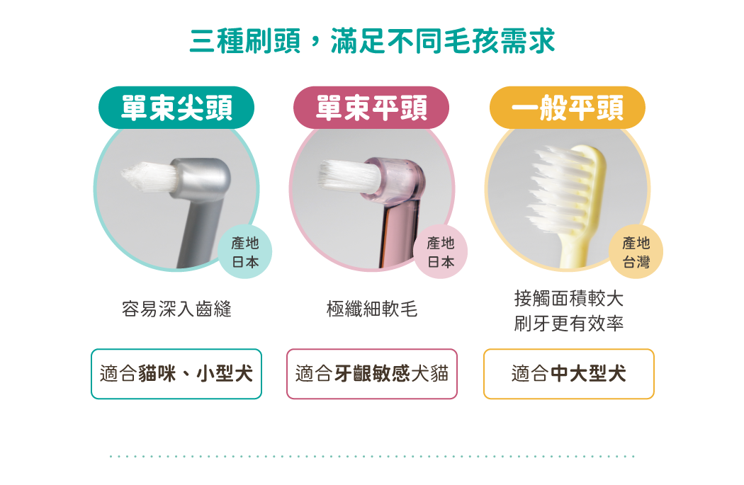 • 單束設計+細軟毛,不刺激毛孩牙齦