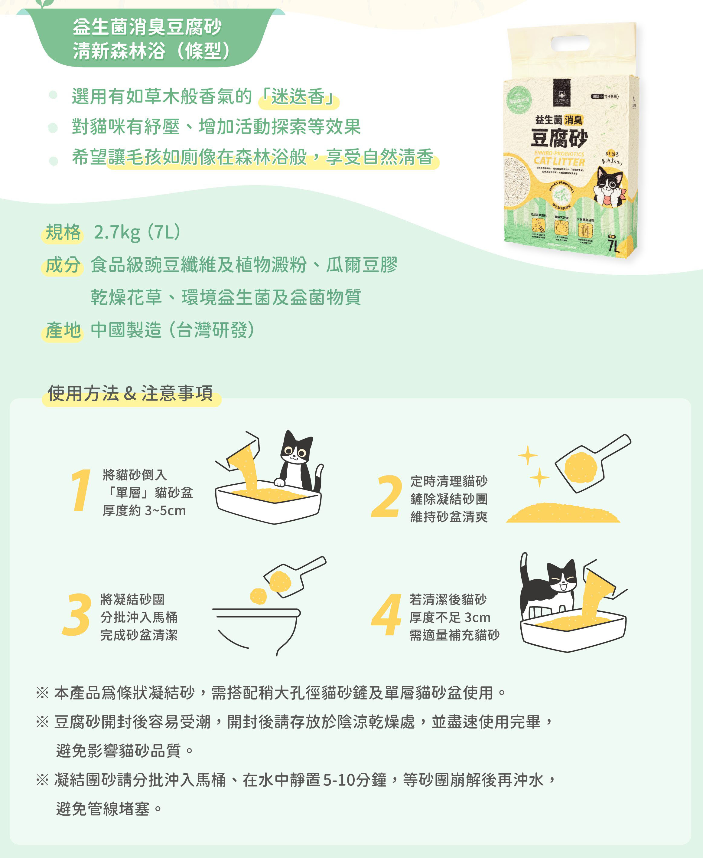 【品名】益生菌消臭豆腐砂-清新森林浴(條型)