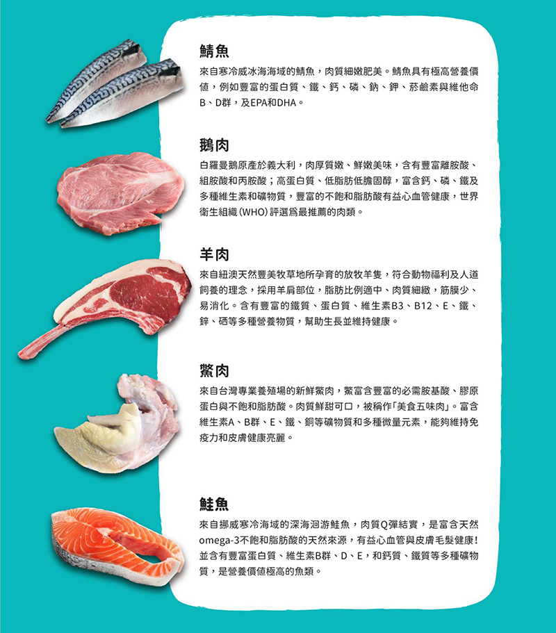 【口味】香甜鵝肉/草原羊肉/深海鯖魚/養殖鱉魚/大海鮭魚