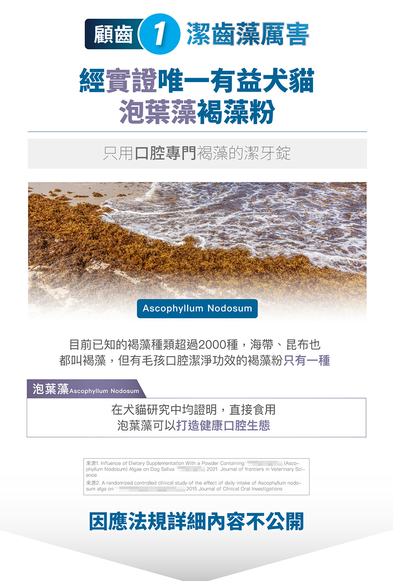 我們只使用有犬貓研究認可的專業褐藻品種,「泡葉藻」。