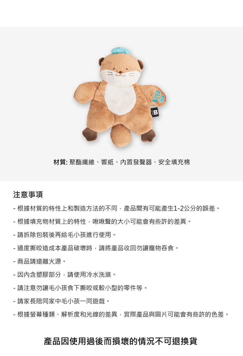 【材質】聚酯纖維、響紙、內置發聲器、安全填充棉