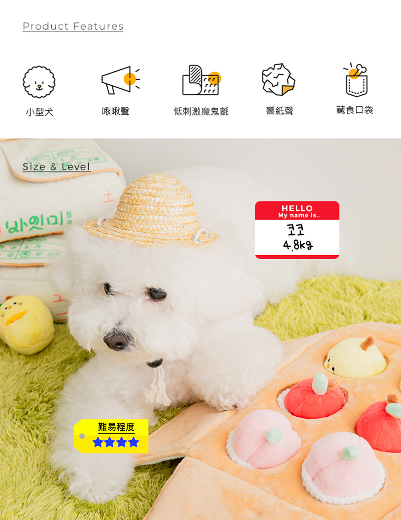 【材質】聚酯纖維、安全填充棉、發聲器、響紙