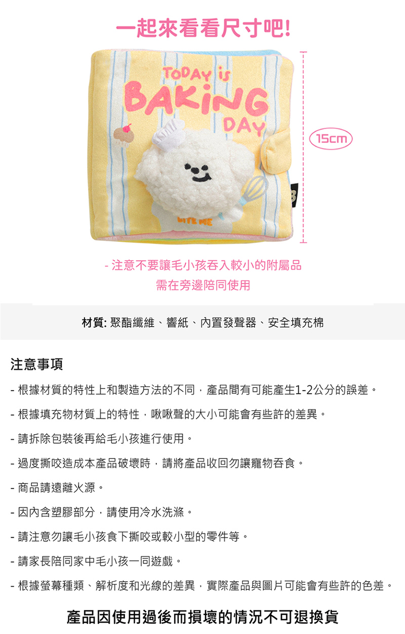 【材質】聚酯纖維、響紙、內置發聲器、安全填充棉
