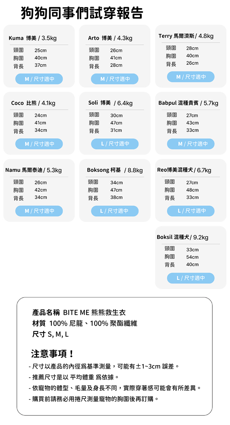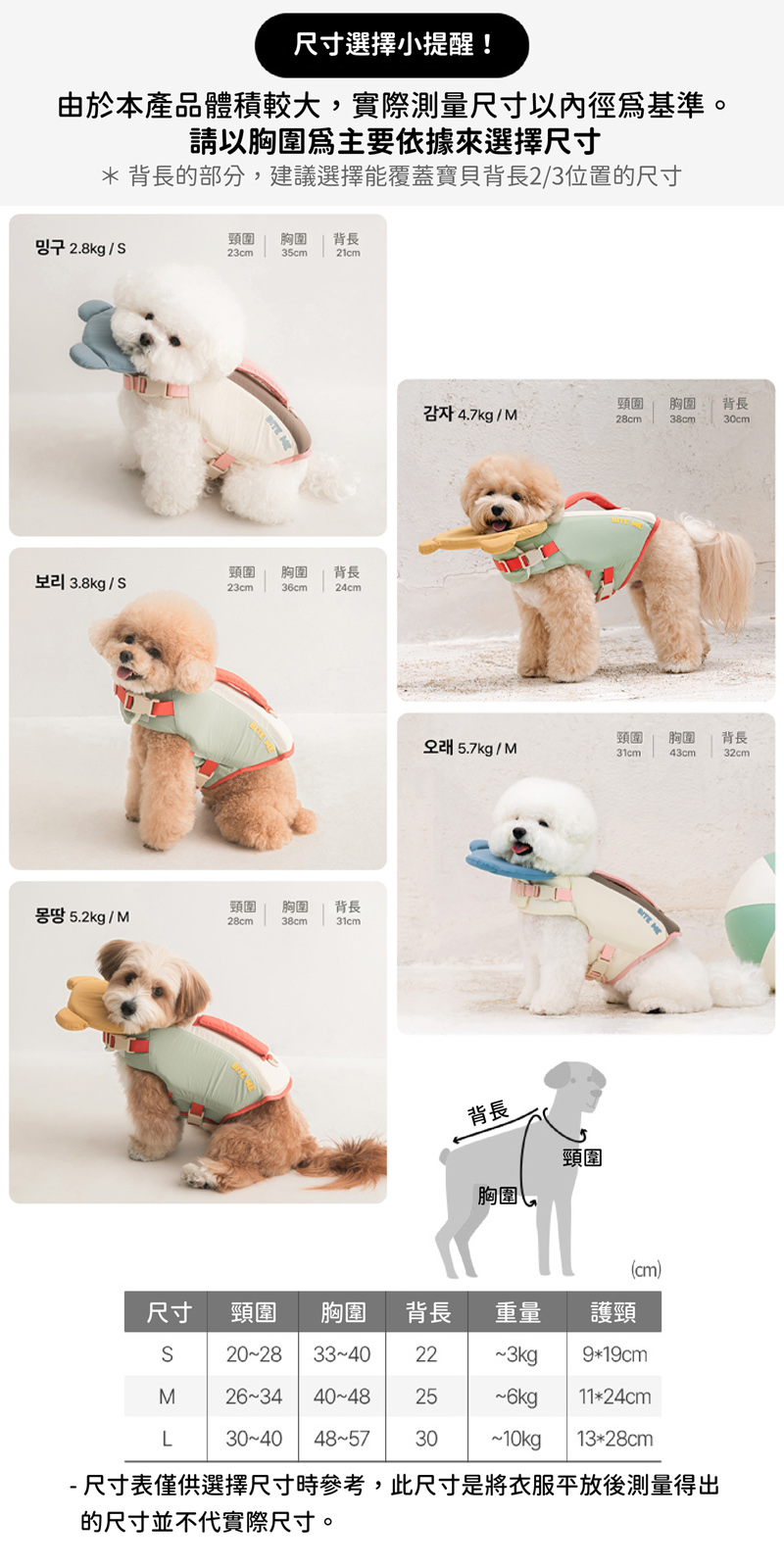 - 為安全起見,務必依照寵物體型選擇合適尺寸。