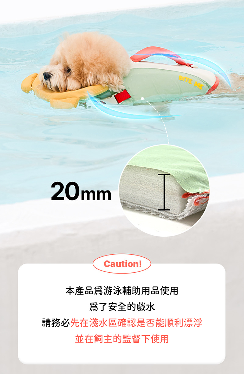 - 本產品僅作為協助寵物玩水的輔助工具,不具防溺功能,使用時務必在飼主監督下進行。