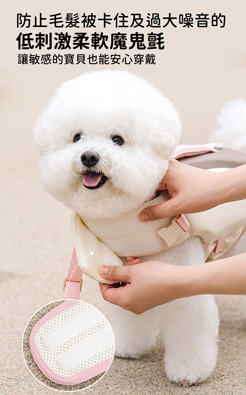 - 使用前請將魔鬼氈與扣具調整至寵物體型合適,並牢固固定後再穿戴。