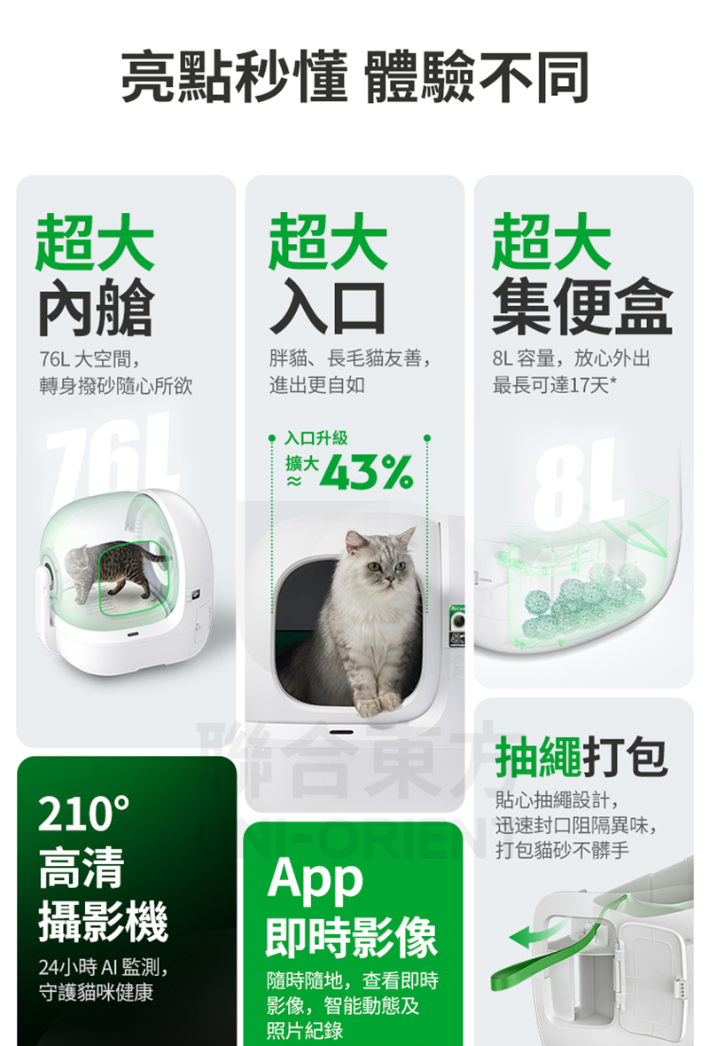 ★8L大容量集便盒,無需鏟屎最長可達17天