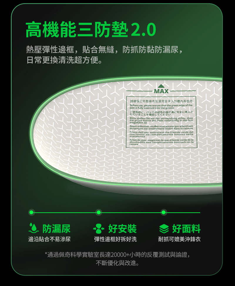 ★專利360°密封防漏技術,搭配升級三防墊,保持乾爽清新