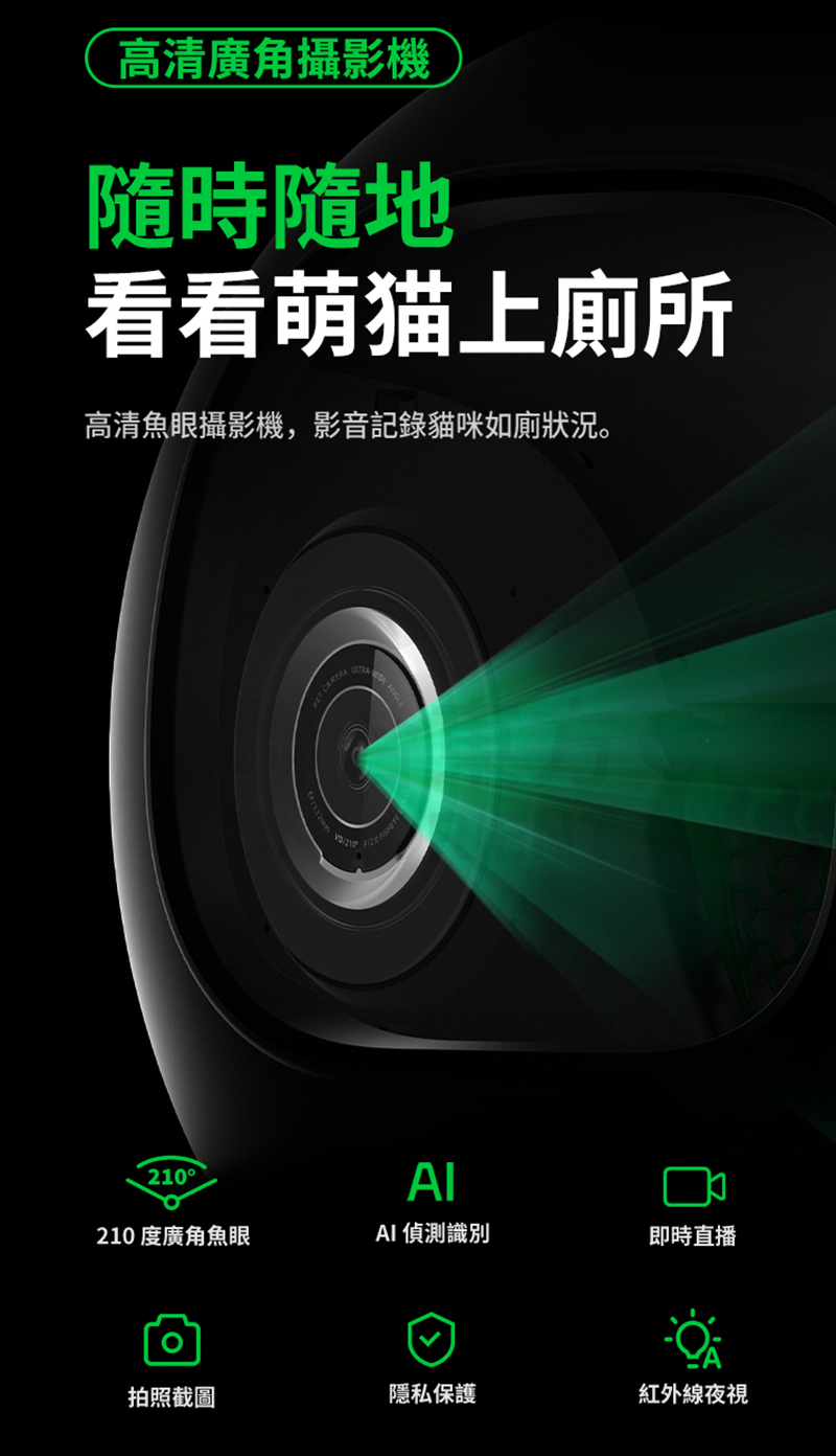 ★210°魚眼鏡頭,清晰記錄如廁數據