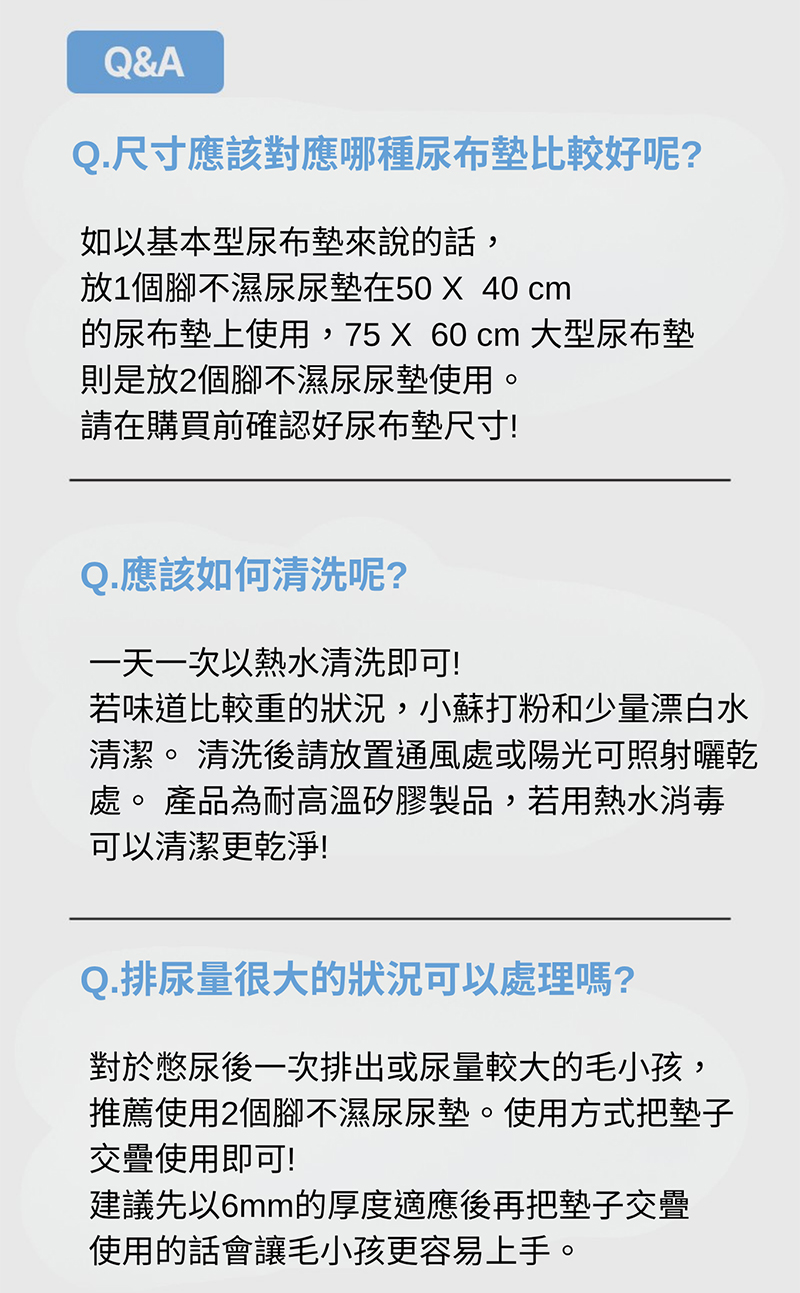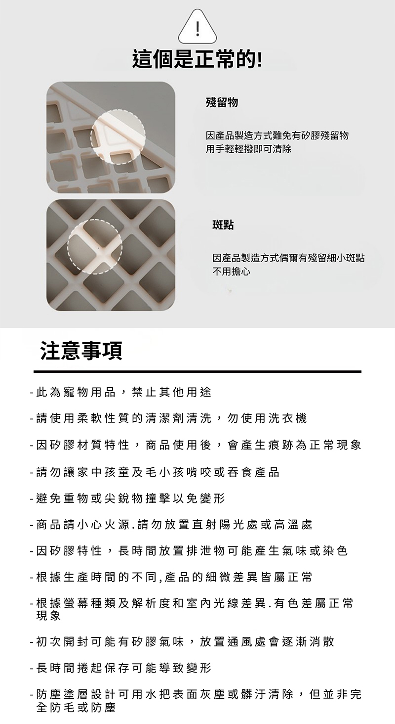 - 因矽膠特性,長時間放置排泄物可能產生氣味或染色