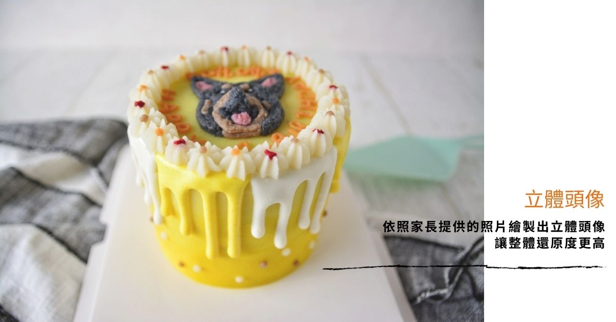 蛋糕中央處放上親手為您寶貝繪製的頭像