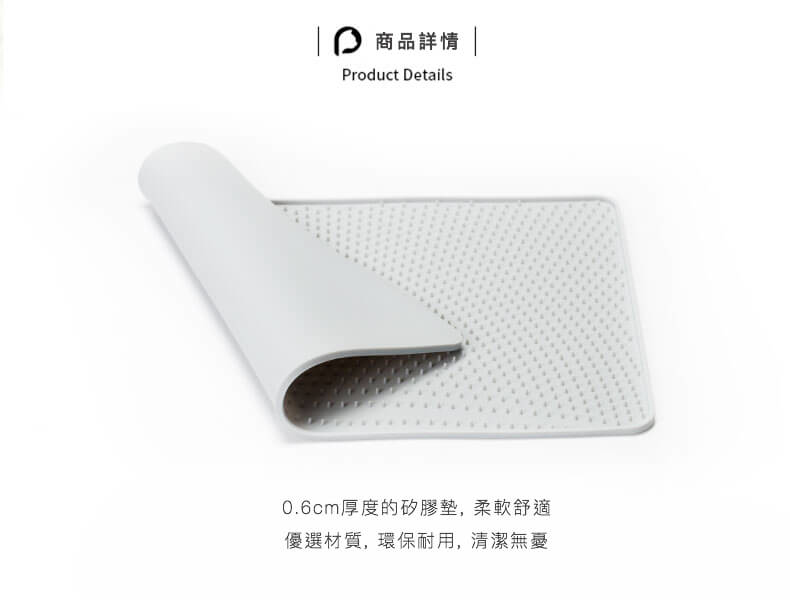 - 0.6cm厚度的矽膠墊,柔軟舒適