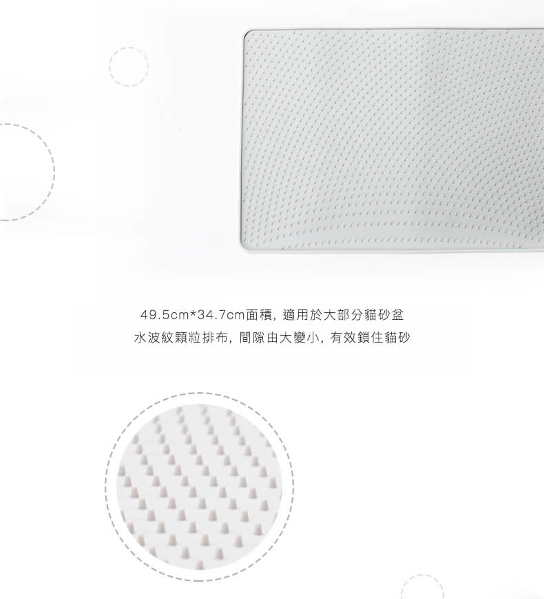 - 水波紋顆粒排布 ,間隙有序有效鎖住貓砂