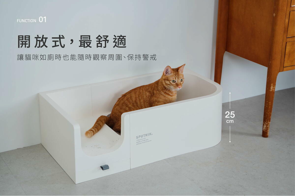 - 尺寸加寬加大、開放式的設計 │ 讓貓咪可以輕鬆轉身、自由進出貓砂盆。