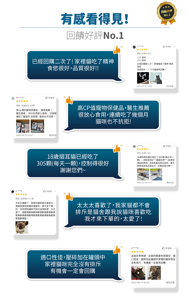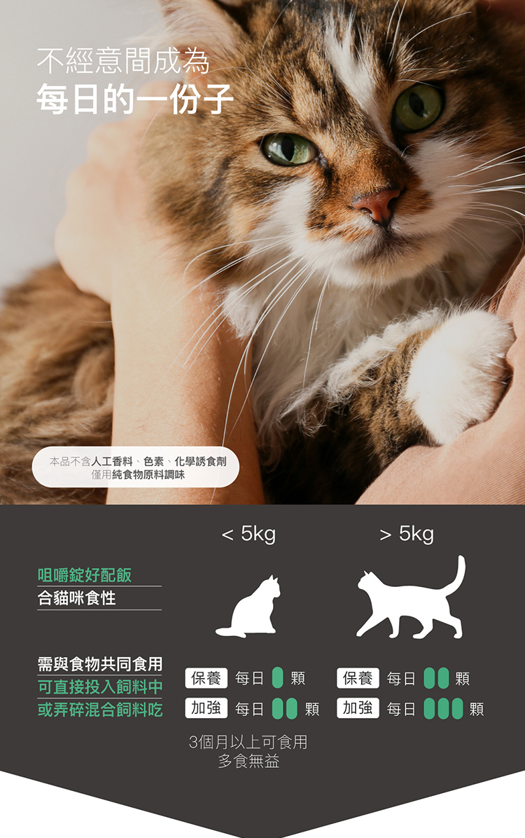 | 注意事項 | 1.若有特殊疾病食用前請先詢問獸醫。 2.本產品含降磷、排毒素成分,建議隨餐或餐後立即食用。 |