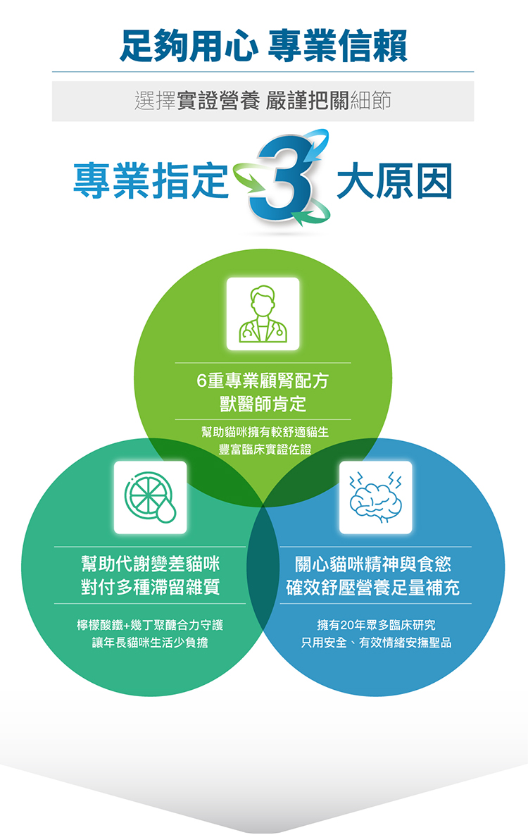 常見 2~6 歲貓咪都可能遇到腎臟問題,平日補充可「幫助維持健康腎臟機能」,若遇到貓咪排尿不順或有食慾變差的狀況時,也適合作為「腎臟病護理的營養」喔!