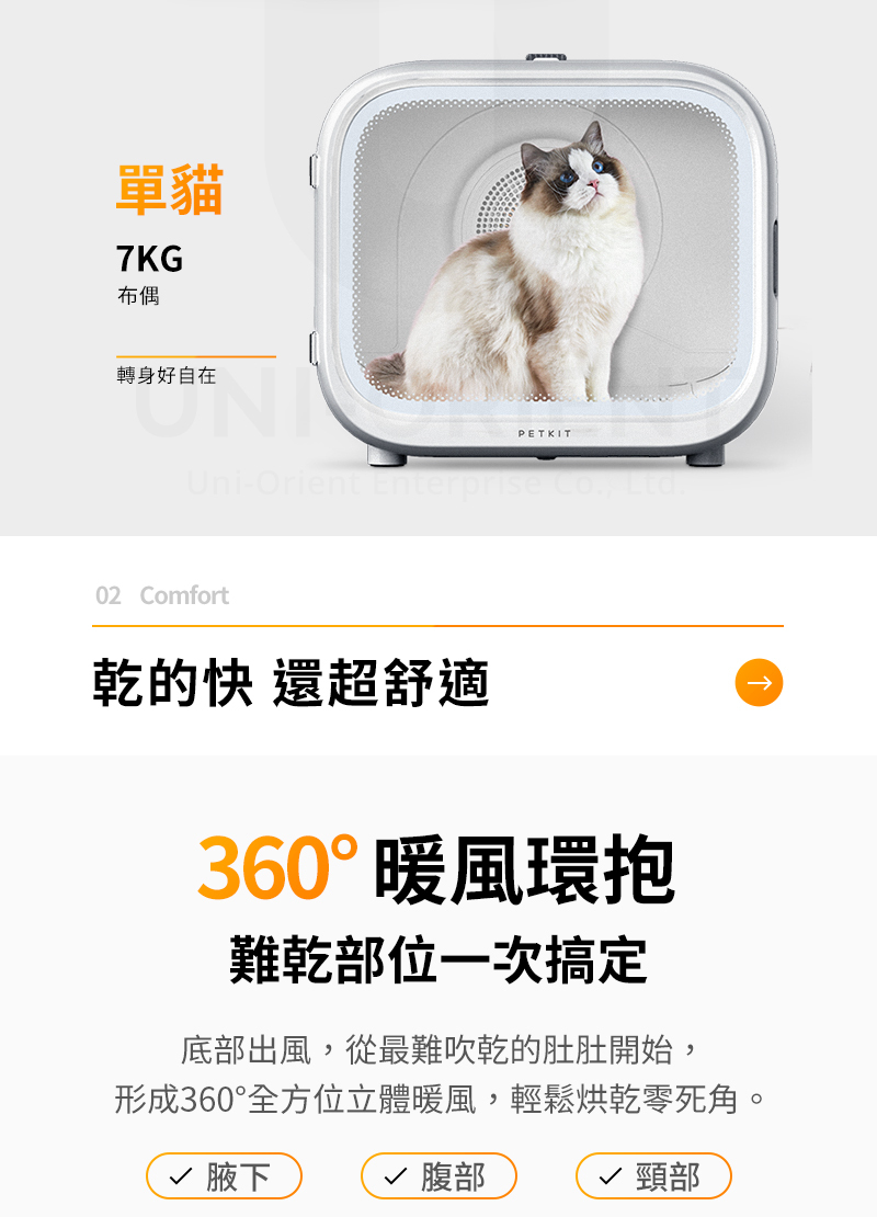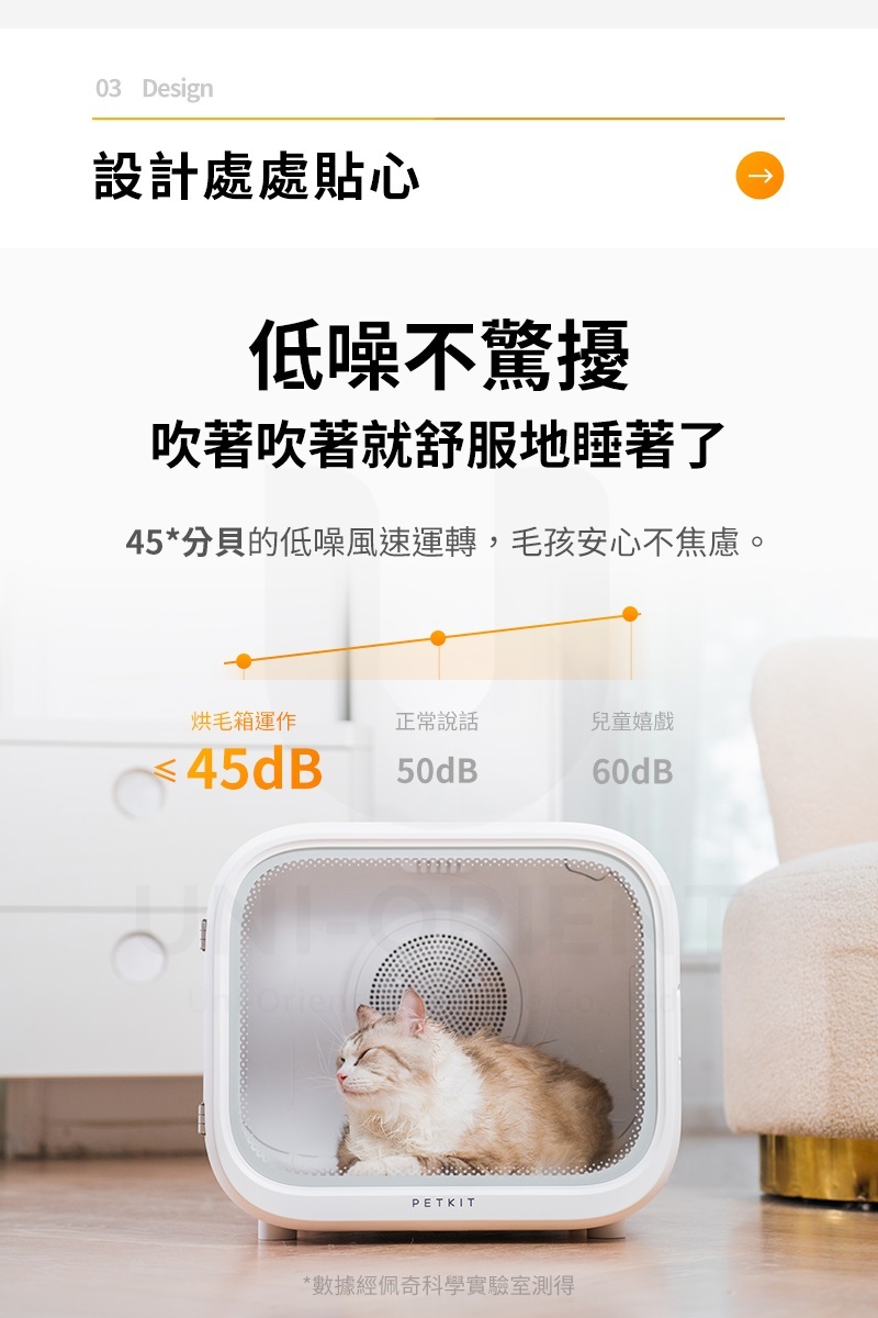 烘毛箱運作音量低於45分貝,烘毛時不驚擾毛孩