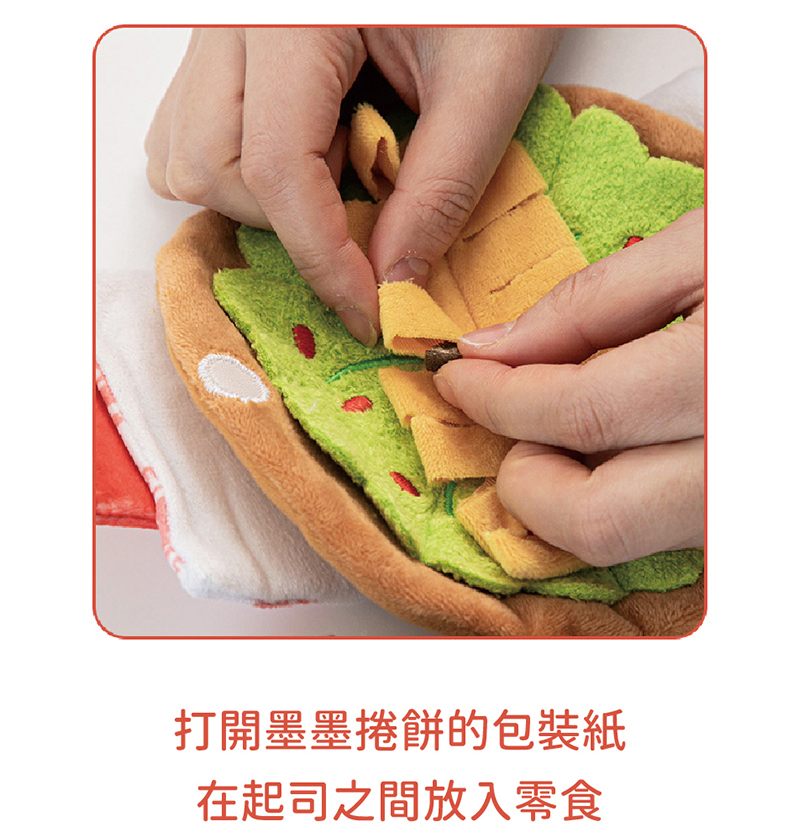 - 讓寶貝在家也能享受到異國美食的樂趣,多處藏食口袋,同時滿足嗅聞探索的天性。