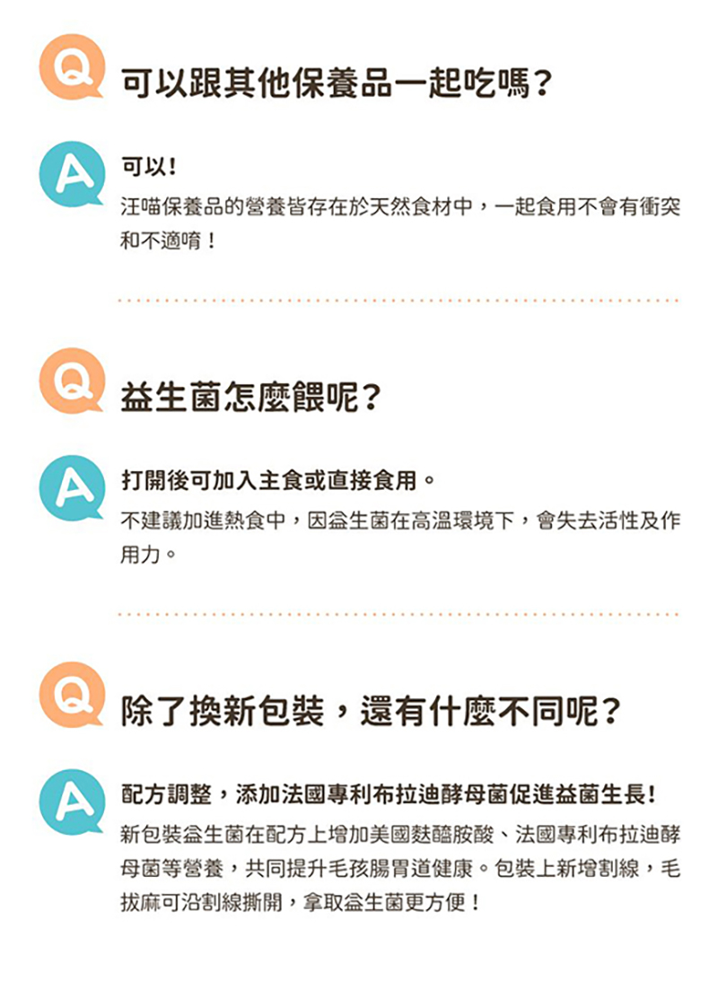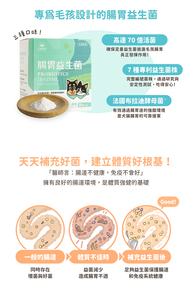 【保存期限】製造日期起算,原味24個月、山味及海味益生菌20個月,有效日期見包裝上標示