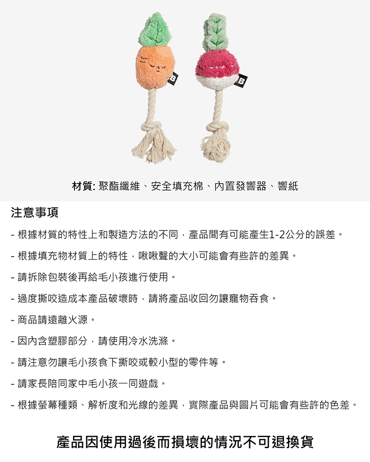- 過度撕咬造成本產品破壞時,請將產品收回勿讓寵物吞食。