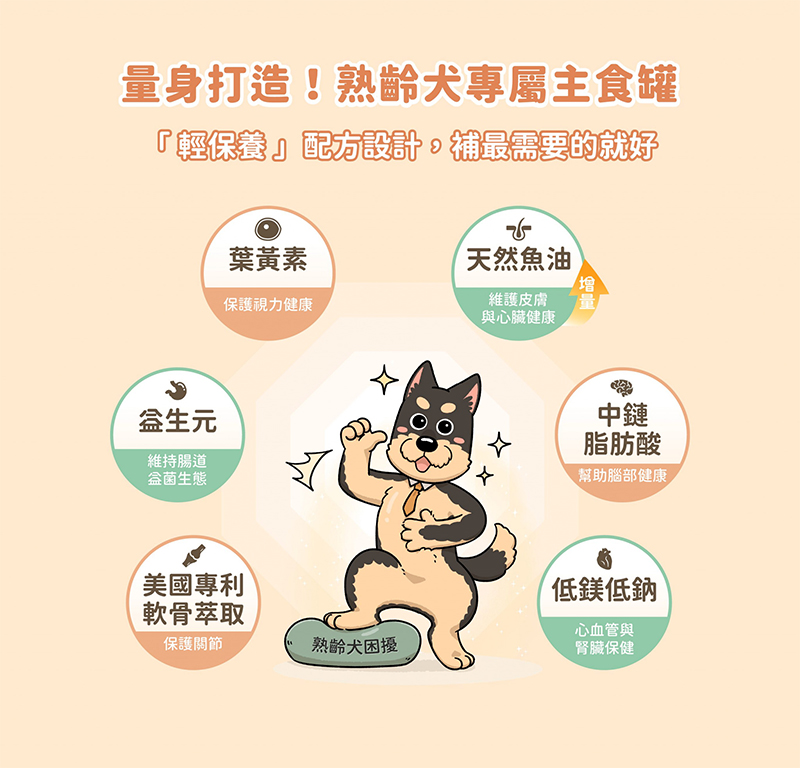 Q1.成年狗狗平常也可以吃熟齡犬銀養罐嗎?