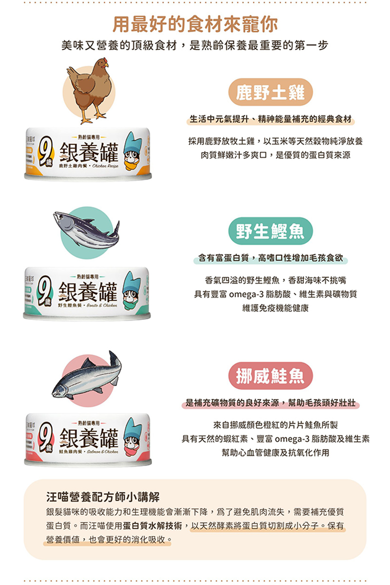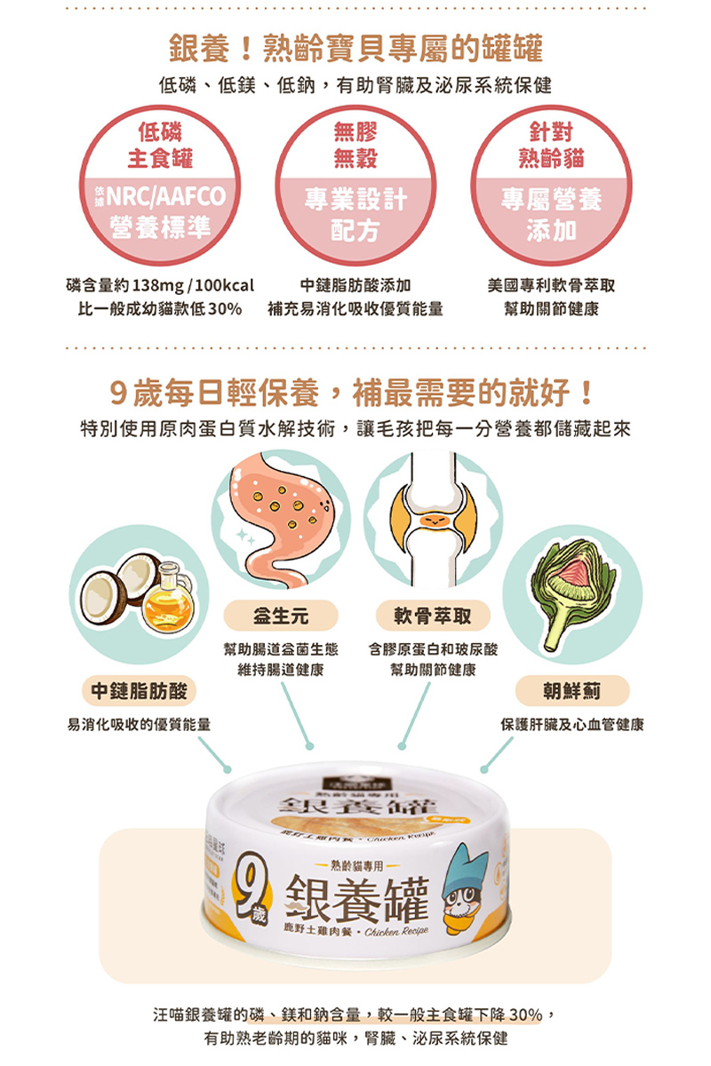 • 老貓專屬營養設計,關節、腦部及心血管營養補充