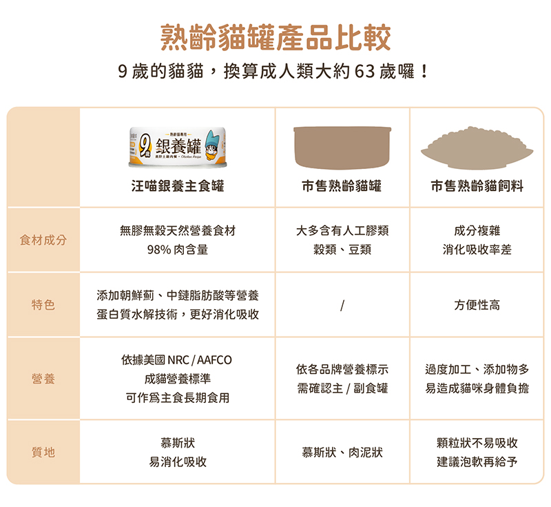 A3.汪喵星球銀養罐含肉量非常高(98%),無添加爭議膠類、大豆薯粉等添加物,因此嗜口性特別好;同時汪喵星球將食材烹飪時的高湯加回罐頭中,因此許多不喜歡主食罐的貓貓,對銀養罐的接受度都非常高呦!