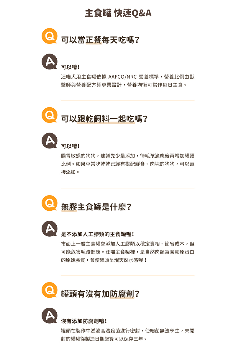 同時汪喵將食材烹飪時的高湯加回罐頭中,因此許多不喜歡吃飼料的狗狗都非常喜歡呦!也可以拌在孩子的飼料中,提高毛孩食慾。