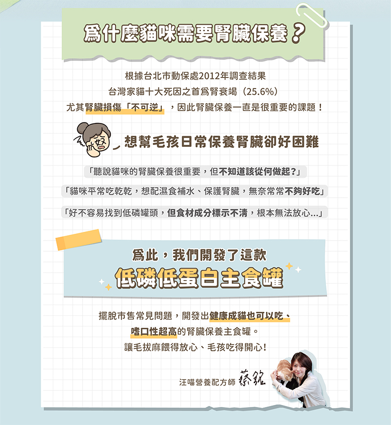 雖然低磷罐的磷含量較低,但營養成分(如鈣磷比、鈣含量等)全依據 AAFCO/NRC 成貓營養標準設計,可以作為成貓的日常營養主食。