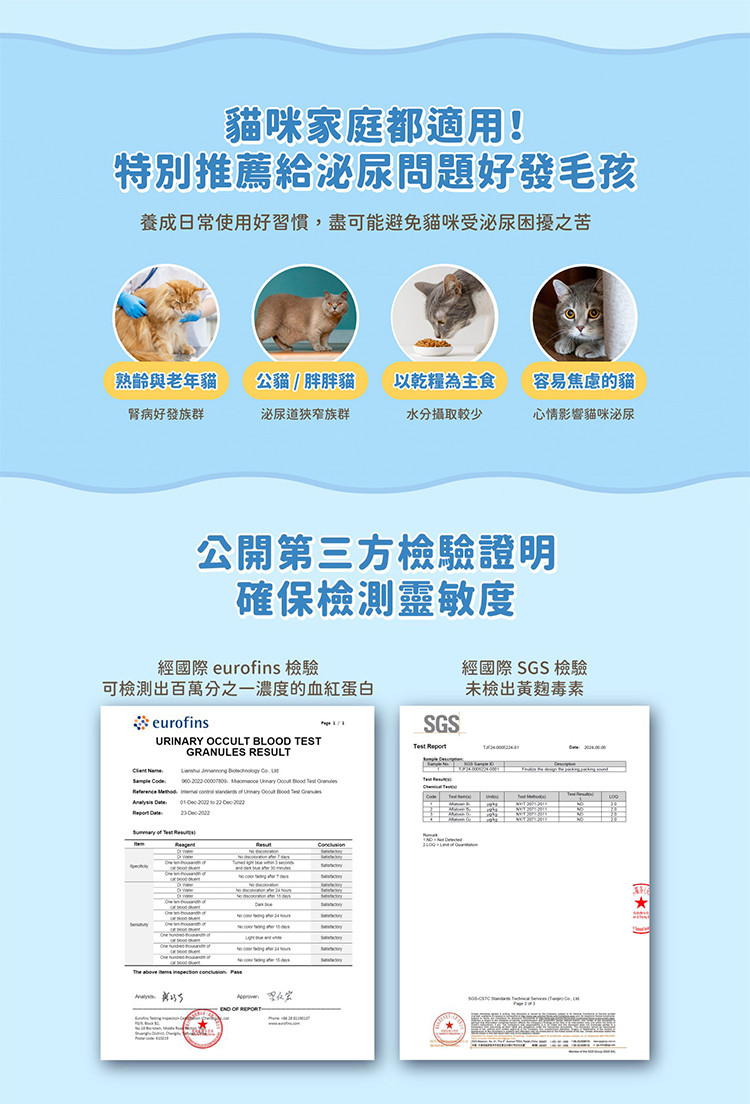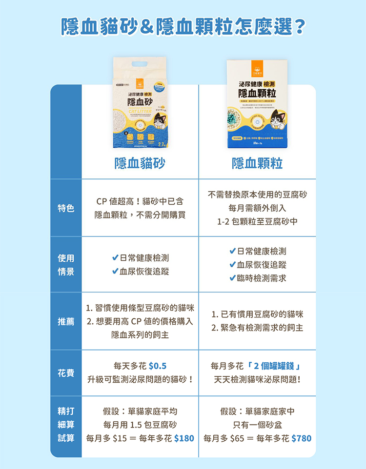 ※ 隱血顆粒僅建議使用於豆腐砂中